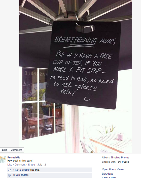 It seems like a slam-dunk business plan: directly appeal to a group that is exhausted and feeling ostracized for doing something as natural as giving a baby sustenance, show them you're even the slightest bit appreciative of their ordeal, and they'll "Like" the living crap out of your cafe.
